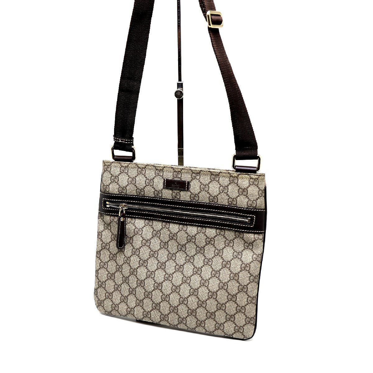 > 中古品 グッチ ショルダーバッグ GGスプリームキャンバス レザー ゴールド金具 ポシェット 295257