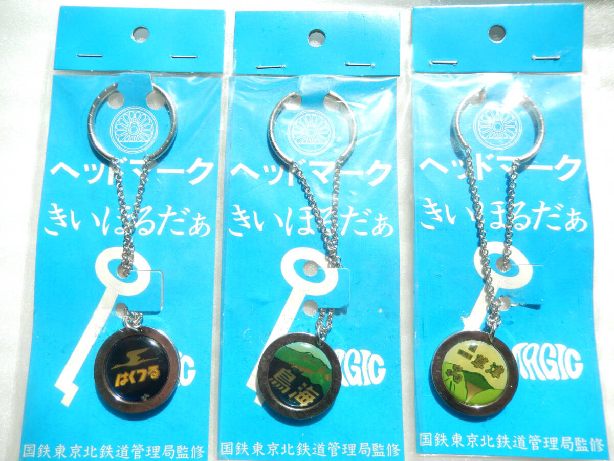 - レア品《 国鉄時代 の東京北管理局 監修 ヘッドマーク デザイン 金属製キーホルダー 3種 はくつる 鳥海 草津 》☆★☆★ 鉄道 グッズ 電車