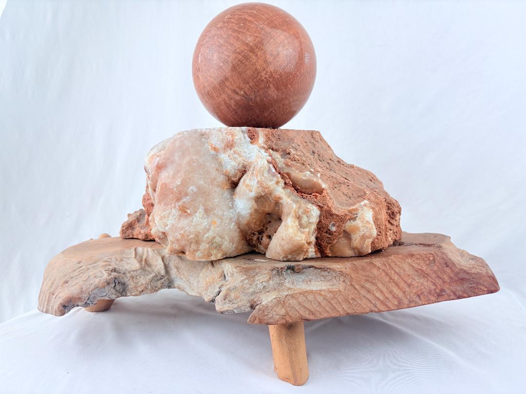 > 【送料込み】天然石&木製 彫刻アート オブジェ 開運石 一点物 ディスプレイ台 60cm インテリア 幸運 パワー 開運 #6870