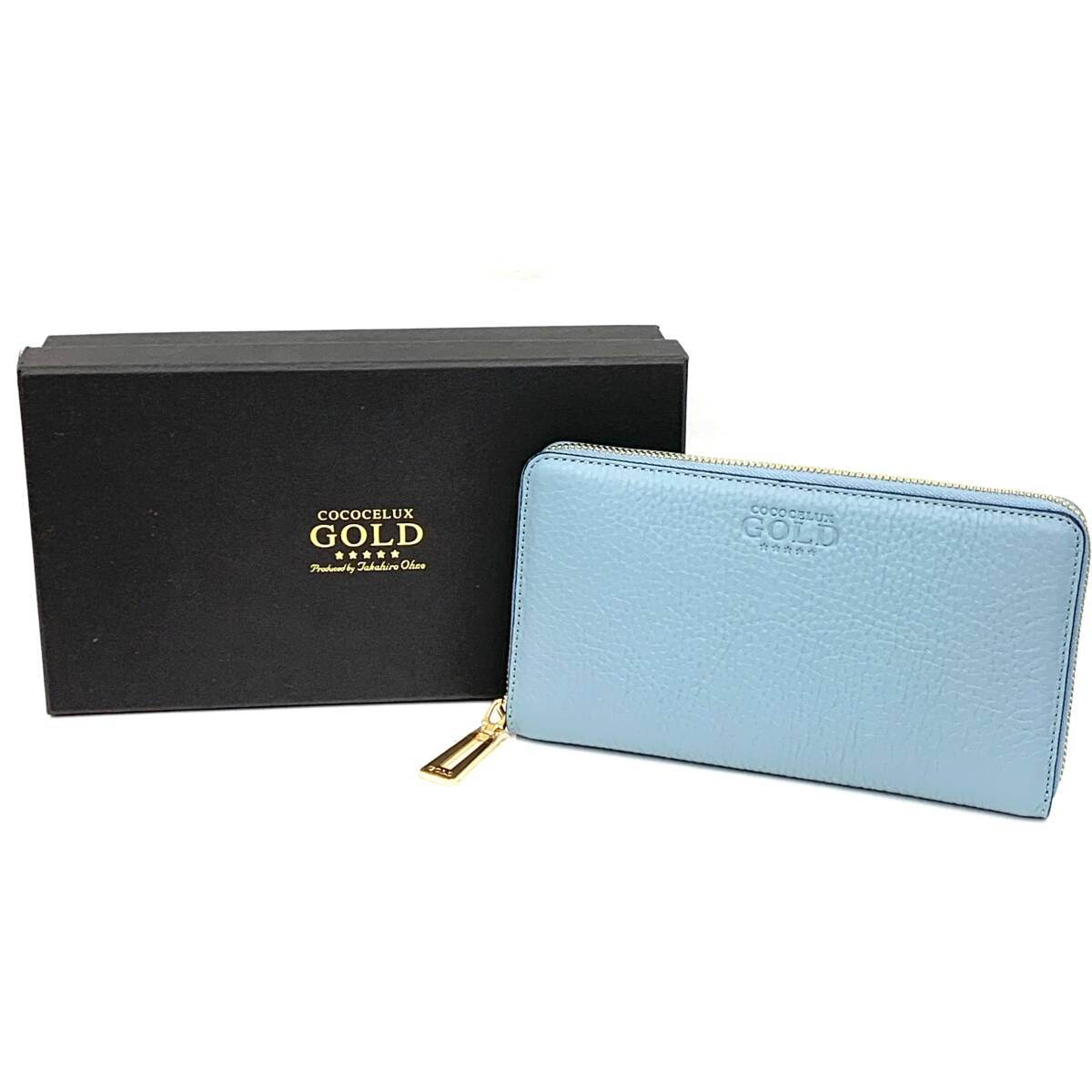 > D0923 新品未使用!格安! COCOCELUX GOLD ココセリュックスゴールド ラウンドファスナー 長財布 ロングウォレット レザー ブルージーン