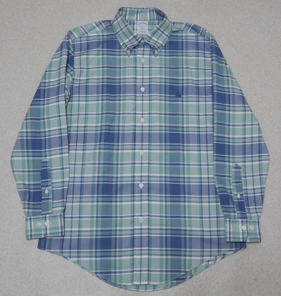 > ブルックスブラザーズ REGENT 長袖 チェック ボタンダウンシャツ 青緑系 M BROOKS BROTHERS