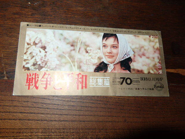 - 映画半券「y353 戦争と平和 総集篇」セルゲイ・ボンダルチュク リュドミラ・サベーリエワ ヴァチェスラフ・チーホノフ