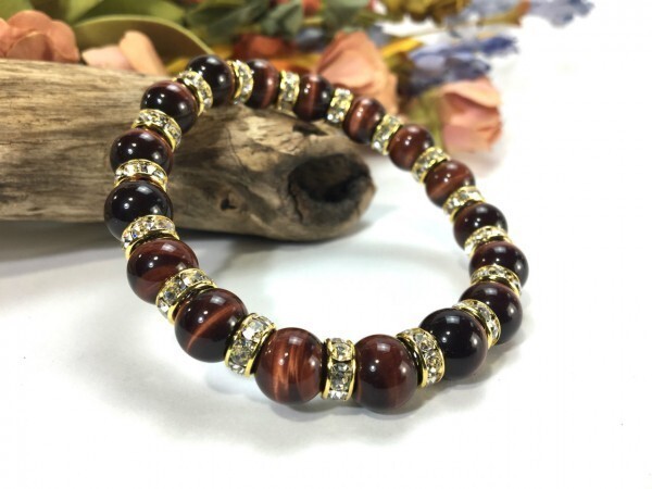 > レッドタイガーアイ パワーストーン ブレスレット 天然石ブレス 10mm メンズ・レディース (ゴールド) 開運 浄化 数珠ブレス ☆