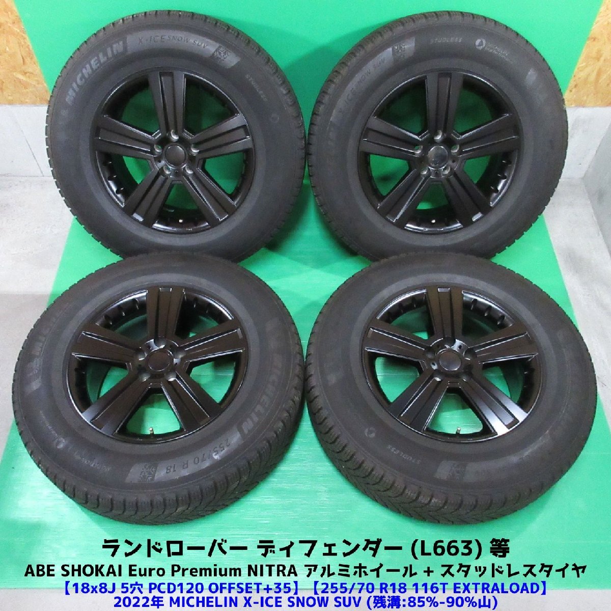 > 良品 L663 ディフェンダー 255/70R18 2022年バリ山スタッドレス 85%-90%山 MICHELIN X-ICE SNOW SUV 4本 5穴PCD120 8J +35 中古新潟