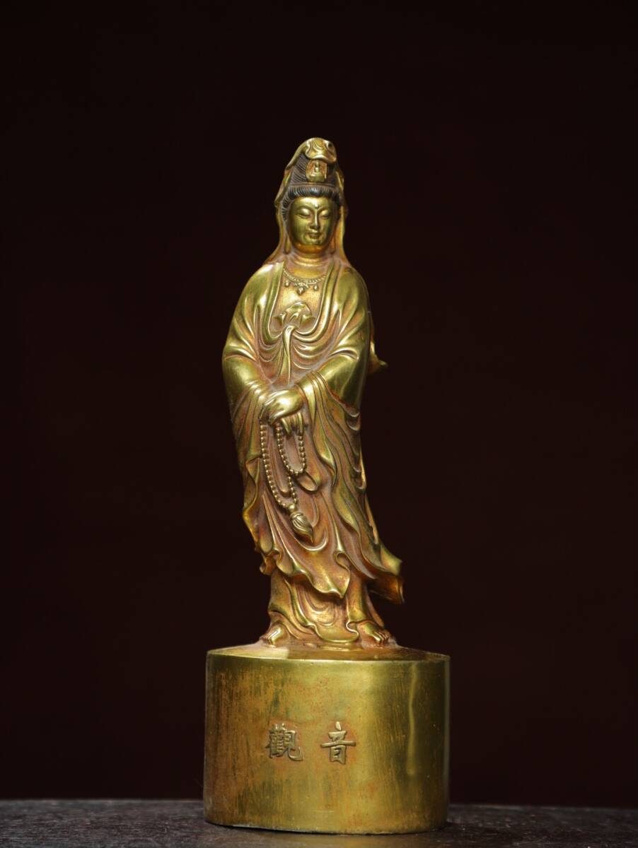 - 『館蔵珍品 銅製 塗金 觀音菩薩像』仏教古美術 供養品 貴重物品 収蔵品 中国古美術