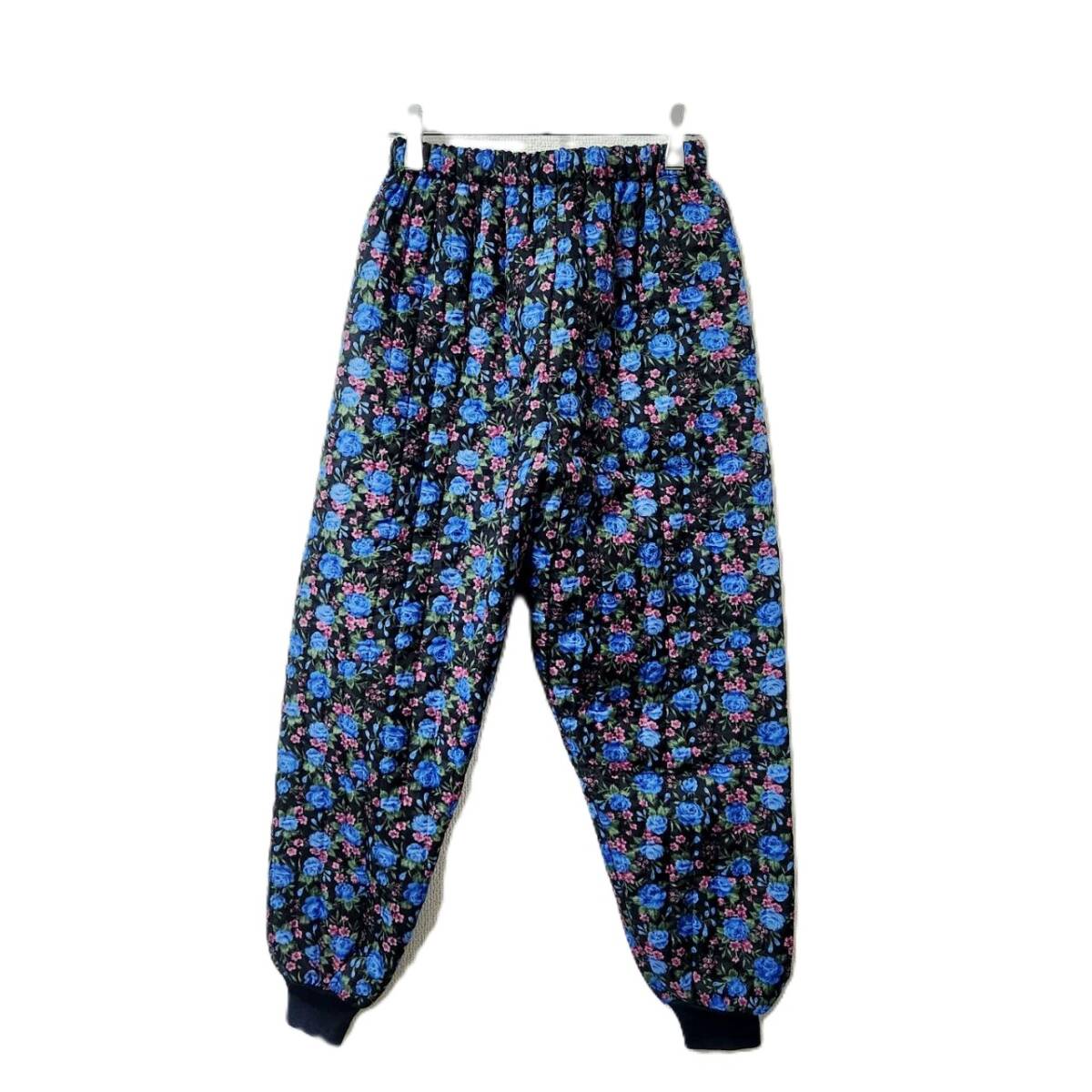- セルヴァン キルティングパンツ M 花柄ウエストゴム 中綿入り 青 ルームウェア