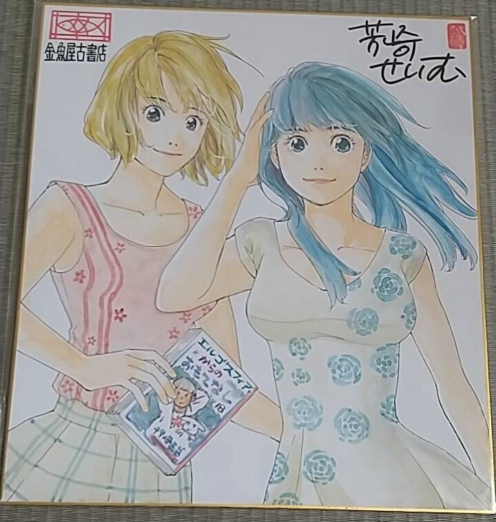 - 芳崎せいむ 金魚屋古書店 鏑木 菜月 小篠 あゆ 直筆サイン入りカラー色紙