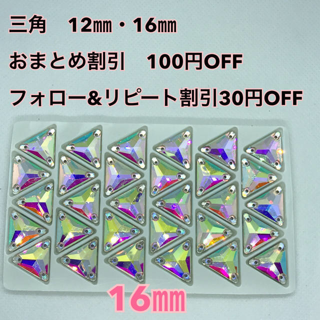 - 装飾用 高輝度 ガラスビジュー/三角 16㎜ 30個セット