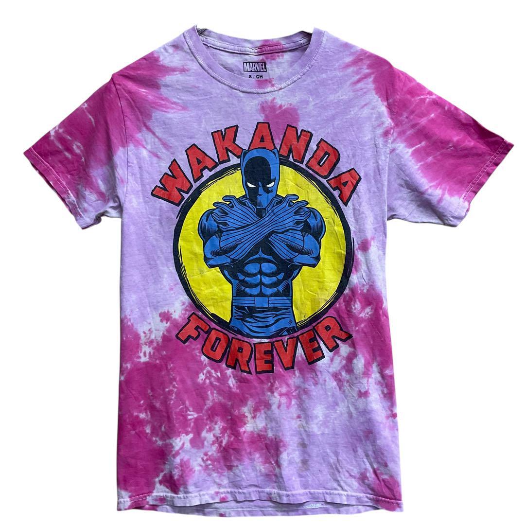 - マーベル メンズTシャツ ブラックパンサー ダイダイ柄 アメコミ S【3795】