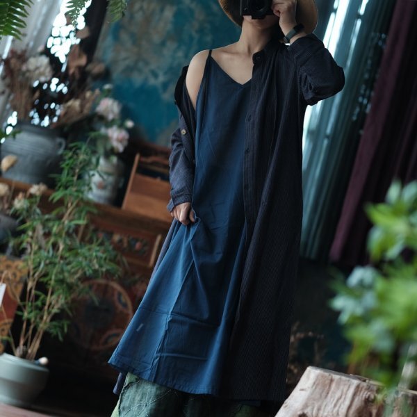 - lgn 24072051-1スリングワンピース Vネック アンティーク風 洋服ミックス ロマンファッション 綿100%コットン ブラック系