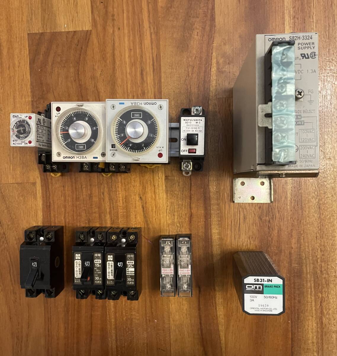 - オムロン社製タイマー3点、ブレーカー3点、安定化電源他