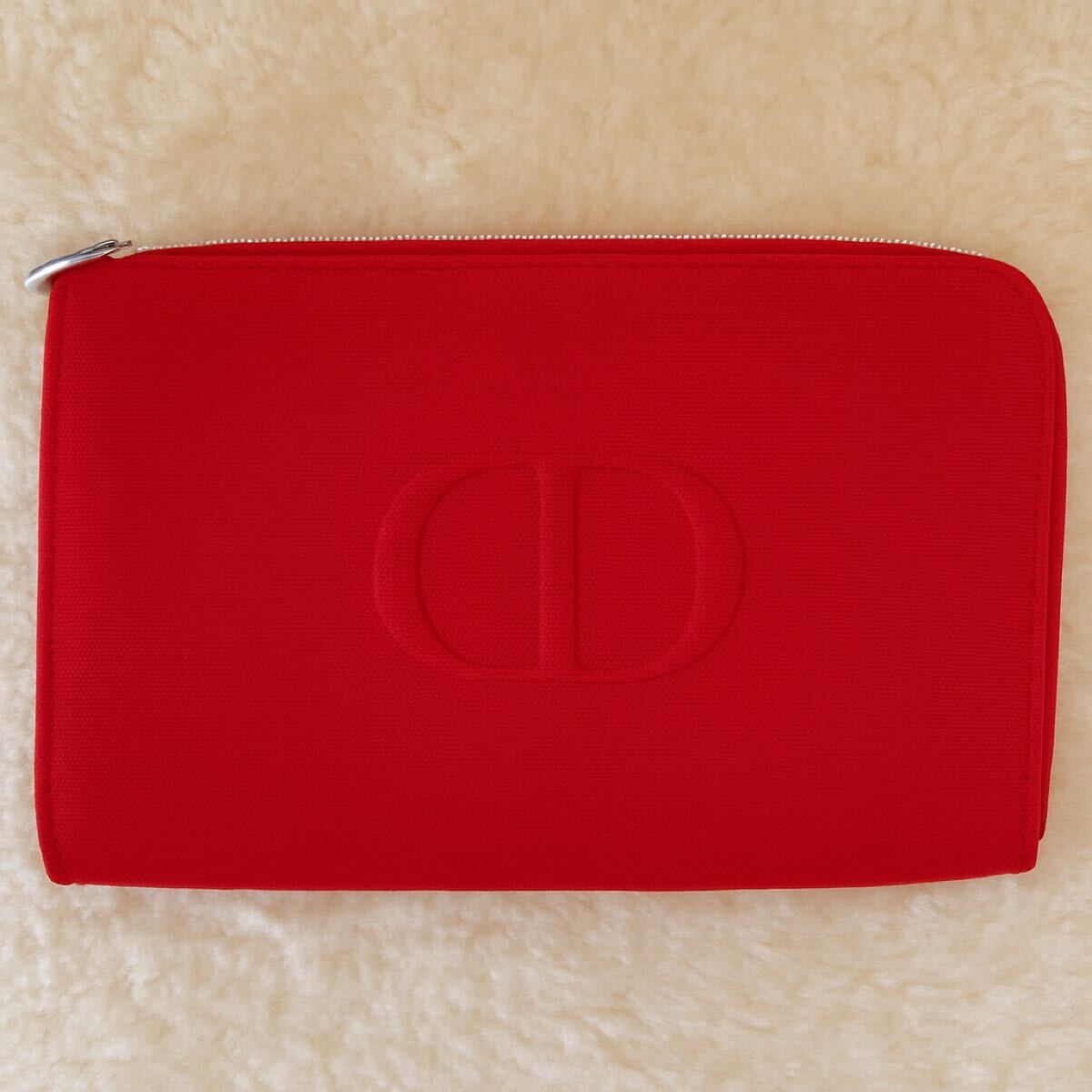 - ☆ DIOR ディオール 赤ポーチ CDロゴ ファスナー付き ロゴ入り
