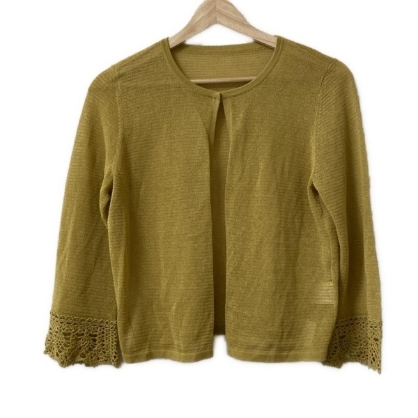 > レリアン Leilian カーディガン サイズ13 L ダークイエロー レディース 長袖/一部レース トップス