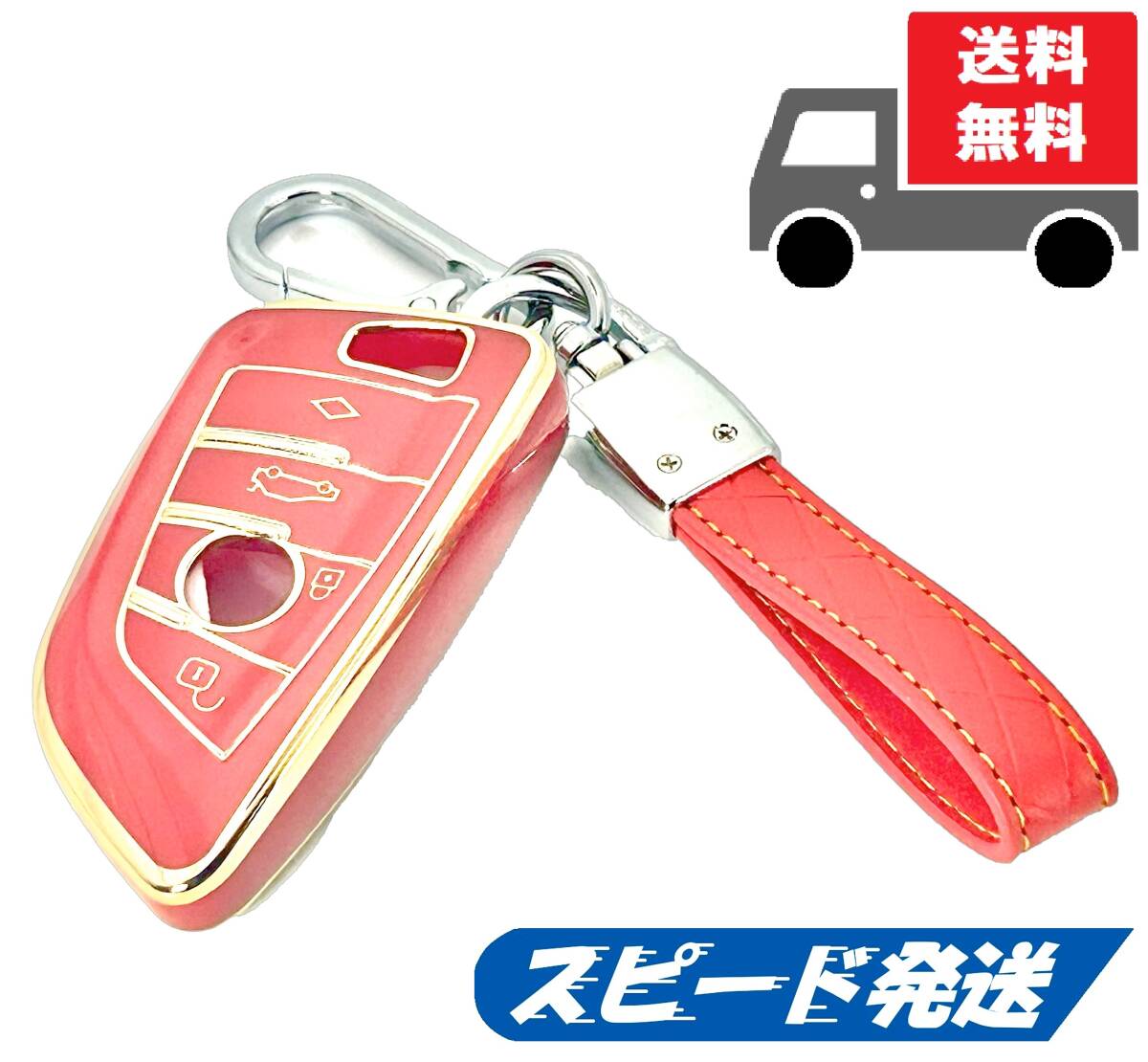 - ★送料無料★キーホルダー付き★BMW用 キーケース キーカバー★レッド 4ボタン★Aタイプ