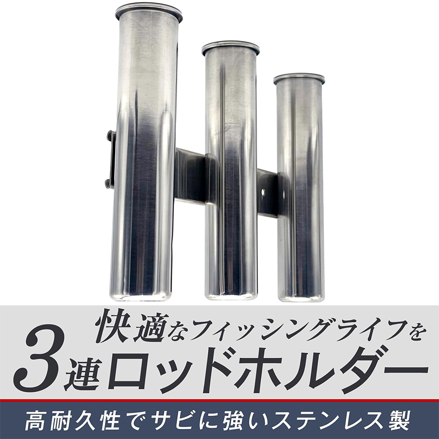 - 汎用 釣りロッドホルダー 3連 ボート用 ステンレス製 竿立て フィッシングツール