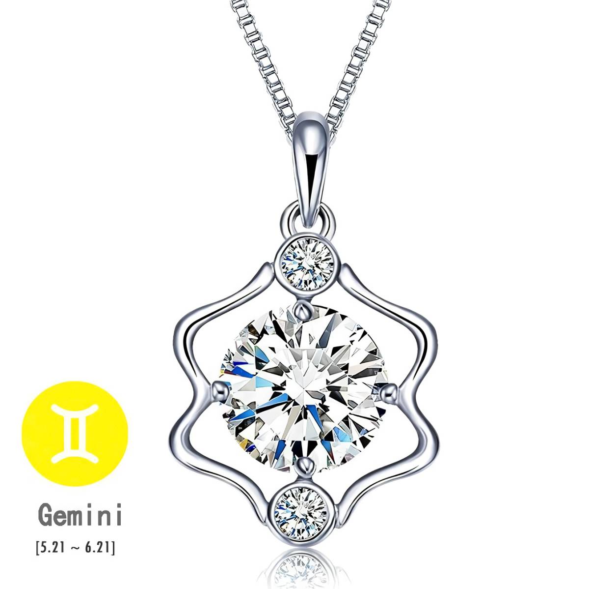 > 新品★送料無料★ふたご座5-6月ダイヤモンド星座ジェミニ プラチナ仕上925シルバーネックレス誕生日プレゼント旅行連休ギフト国内発送