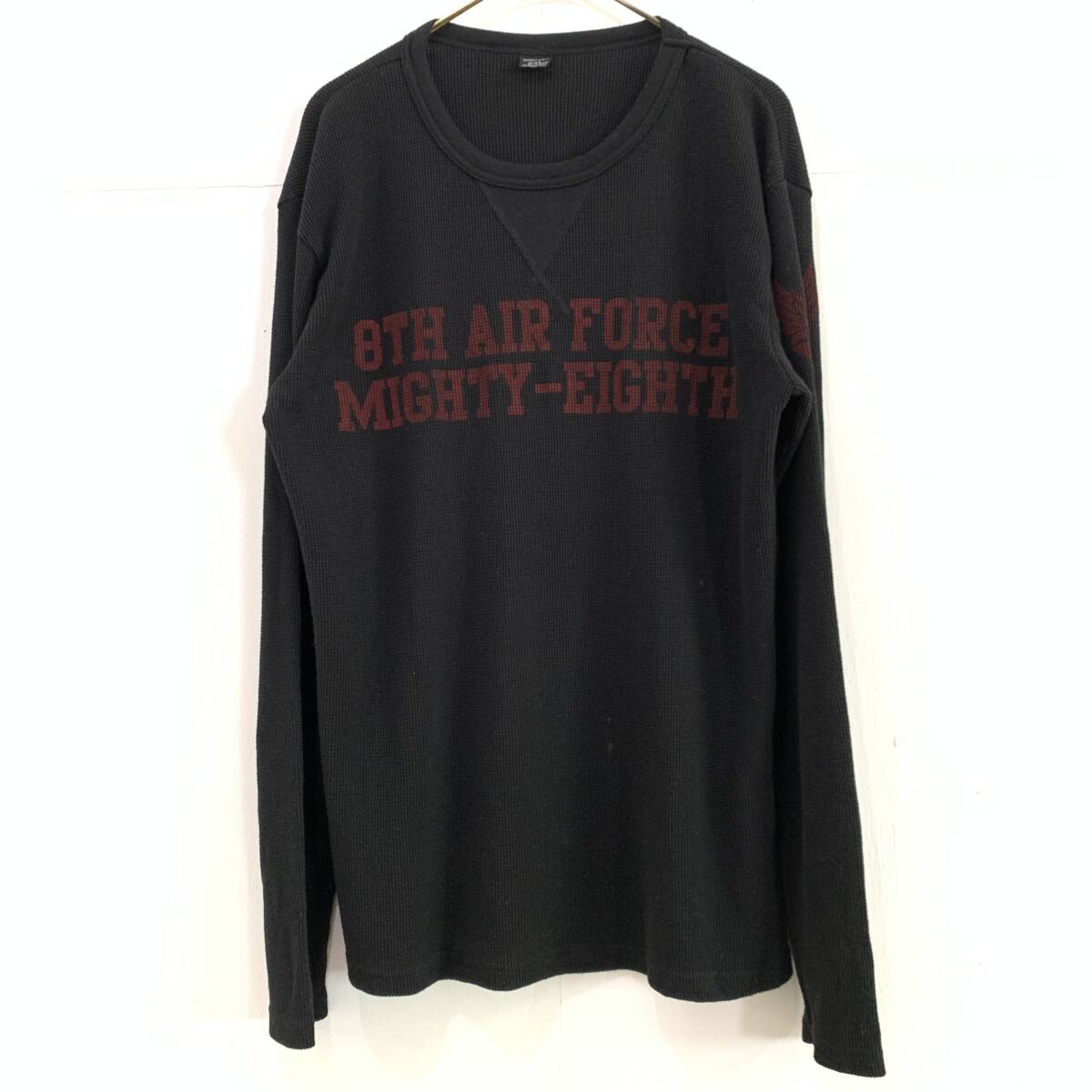 > ☆AVIREX アヴィレックス 両面プリント 長袖サーマルカットソー ロンT ミリタリー ブラック サイズ2XL 古着【レターパックプラス郵送可】G