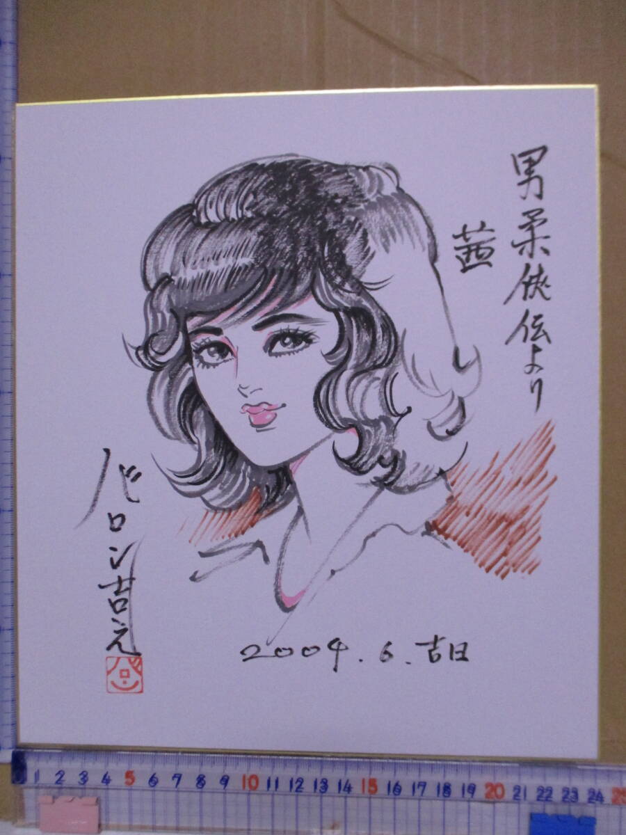 - バロン吉元(1940年生)直筆イラスト・サイン 色紙「男柔侠伝より 茜」日付・サイン・署名・落款 カラー 原画 漫画専門店にて購入