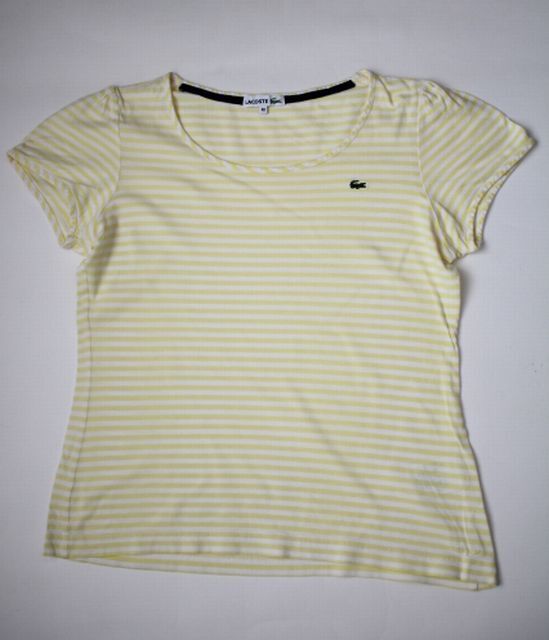 - 【LACOSTE】ラコステ Tシャツ ボーダー イエロー レディース (40) カットソー 中古 半袖