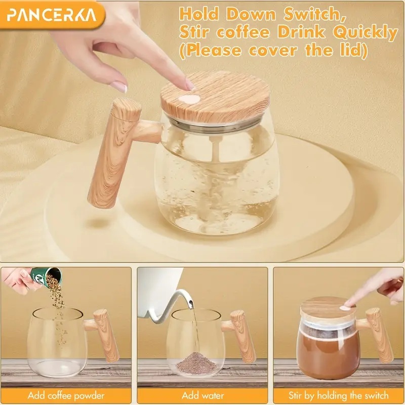 - ガラス電動ミキサーマグバッテリー漏れ防止の蓋付き自動ミキシングカップコーヒーミルクプロテインシェイクに最適楽だし安全です中も見える