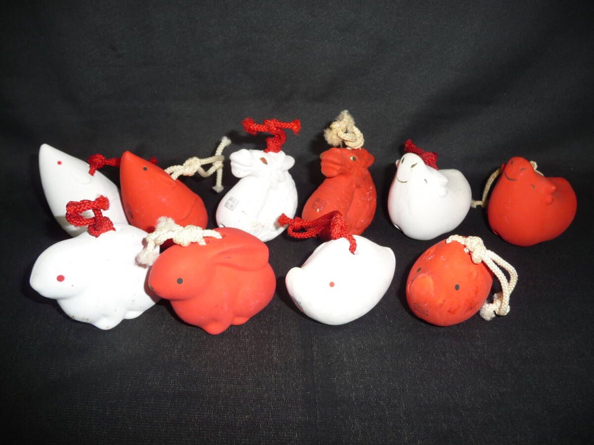 - ◆古い*土鈴◆『干支*紅白ペアー5種/全10体』 感動/美品♪♪