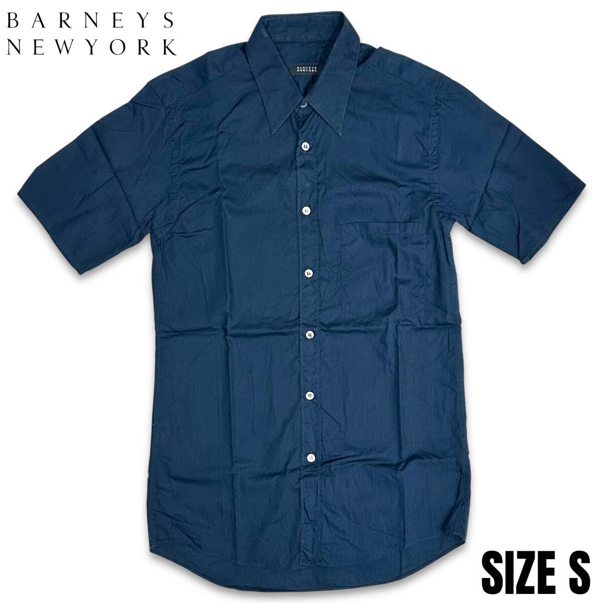 - 国内正規品■BARNEYS NEW YORK (バーニーズ ニューヨーク) 高品質 イタリア製 綿100% コットン 胸ポケット 半袖 シャツ 紺 ネイビー S