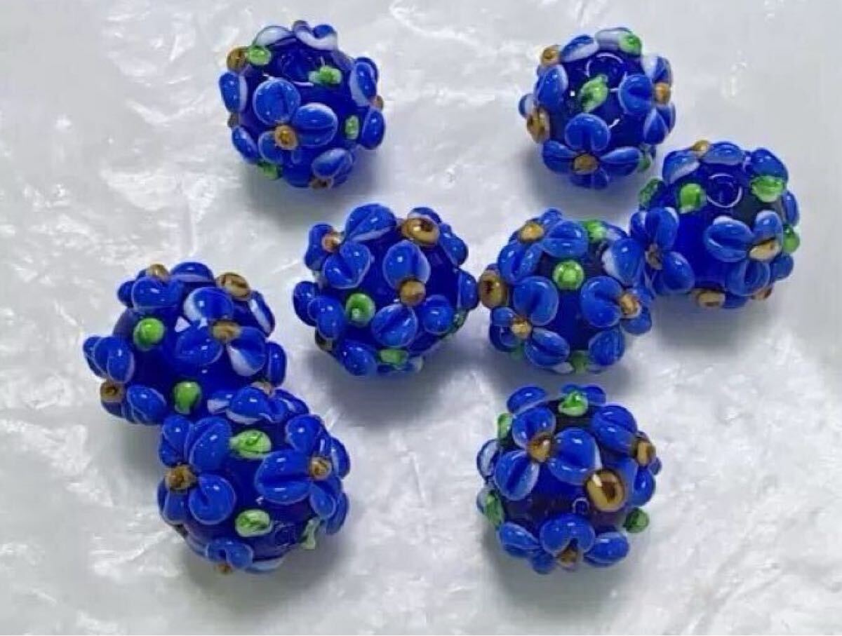 - つぶつぶ可愛い立体的な花柄 ガラスビーズ トンボ玉 アクセサリーパーツ手芸diy 紫陽花 12mm NV