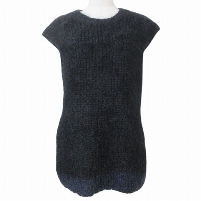 - ディーゼル DIESEL +EDUN モヘヤニット セーター キャップスリーブ 厚手 バイカラー XS 黒 紺 X レディース