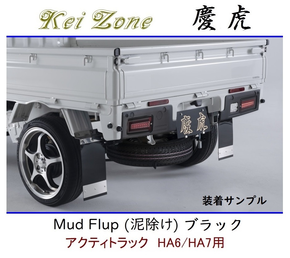 > ◆Kei Zone 慶虎 Mud Flap 泥除け 鏡面ステー付【ブラック】軽トラ用 アクティトラック HA7