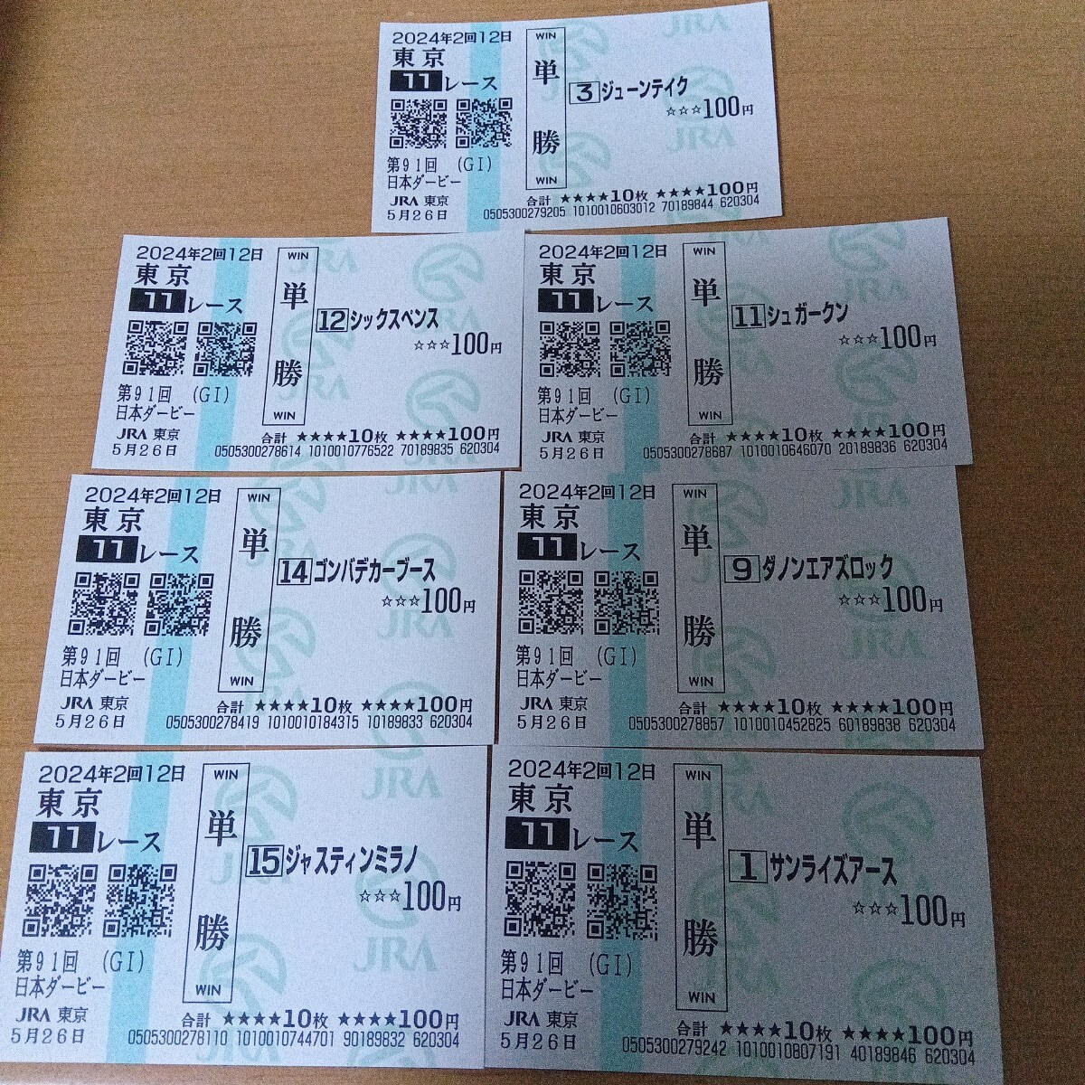 - 競馬 現地単勝馬券 第91回 日本ダービー 東京優駿 現地購入馬券 ジャスティンミラノ サンライズアース ダノンエアズロック シュガークン