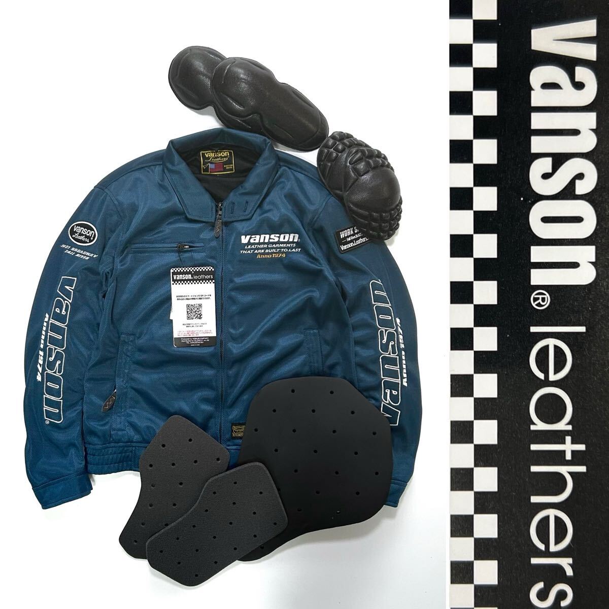 - ★春夏に最適フルメッシュ VANSON VSE25102S NV/WH Lサイズ メッシュジャケット スウィングトップ 楽々ストレッチ 刺繍ロゴ 新品 A70523-5