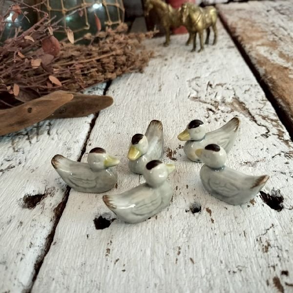 - ヴィンテージ 未使用 陶器 鴨 デコイ 箸置き 5客 かも カモ ダック 陶磁器 レスト ビンテージ アンティーク レトロ 古道具