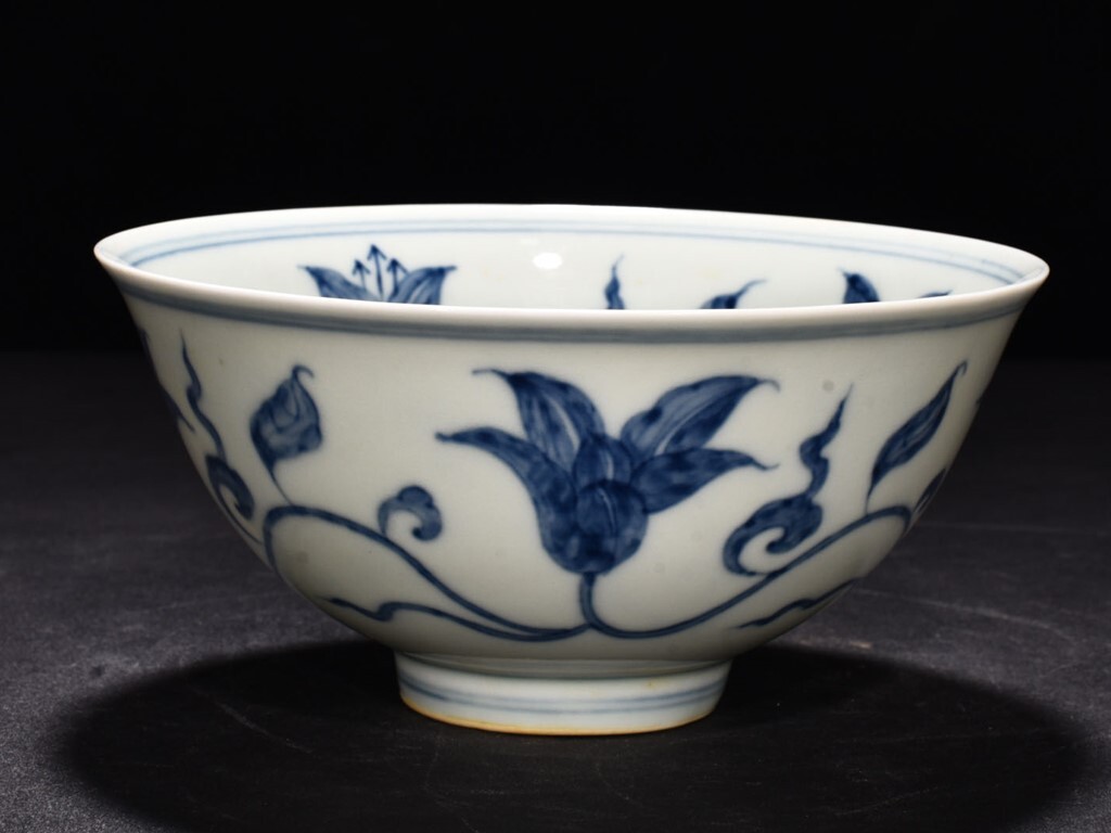 - TB110■中国古玩 唐物 明成化 青花秋葵宮式碗 時代物 極上品■ 高さ7.5cm・直径15cm■