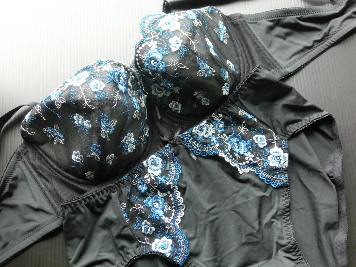 > ☆【C95 3L~4L】ブラック 小花柄刺しゅうブラジャー・ショーツセット 《66 1ー2》