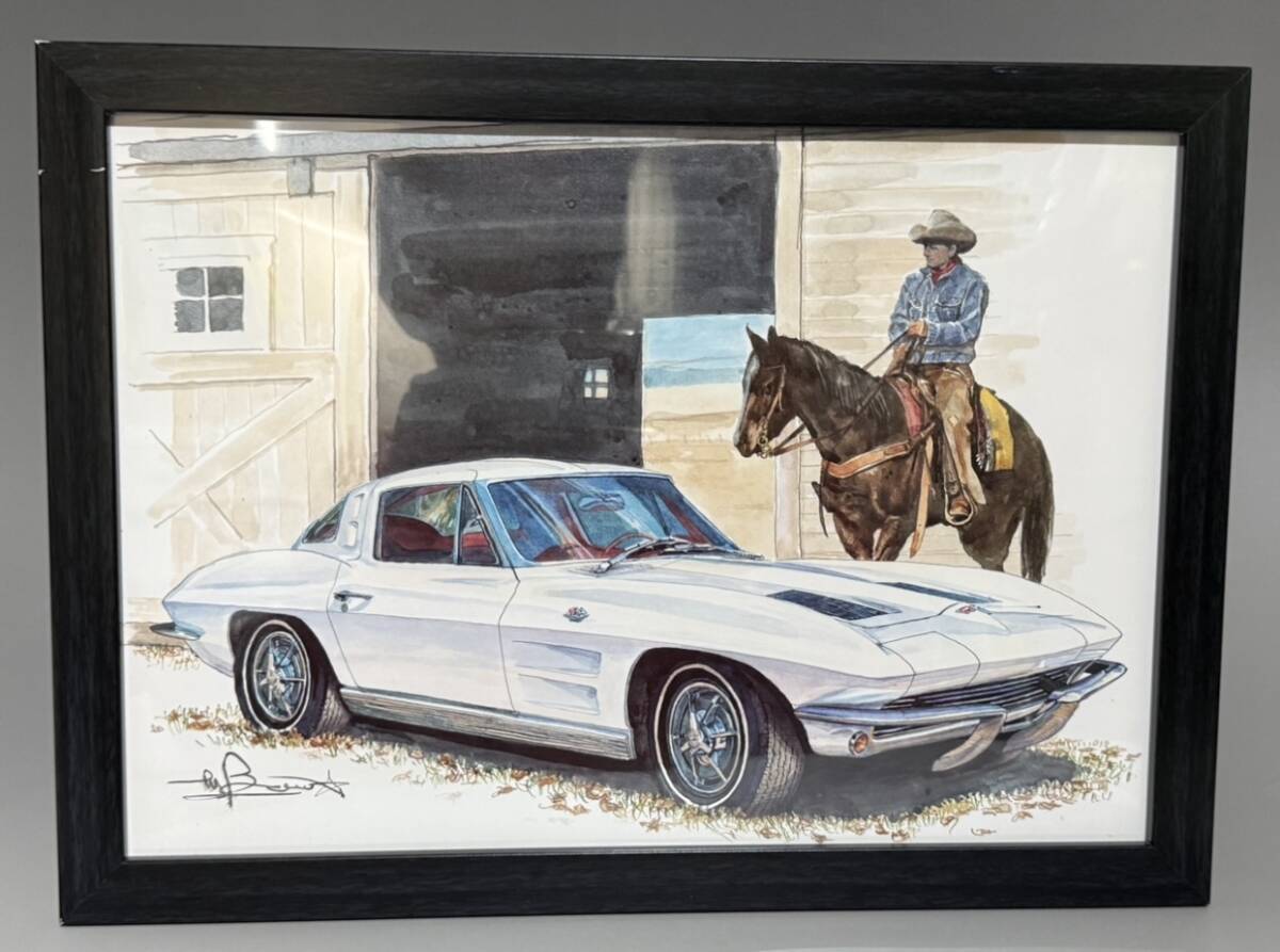 - BOW イラスト シボレー コルベット C2 スティングレイ(Chevrolet Corvette C2 Stingray)額付き カレンダーカット 車 絵 カーマガジン