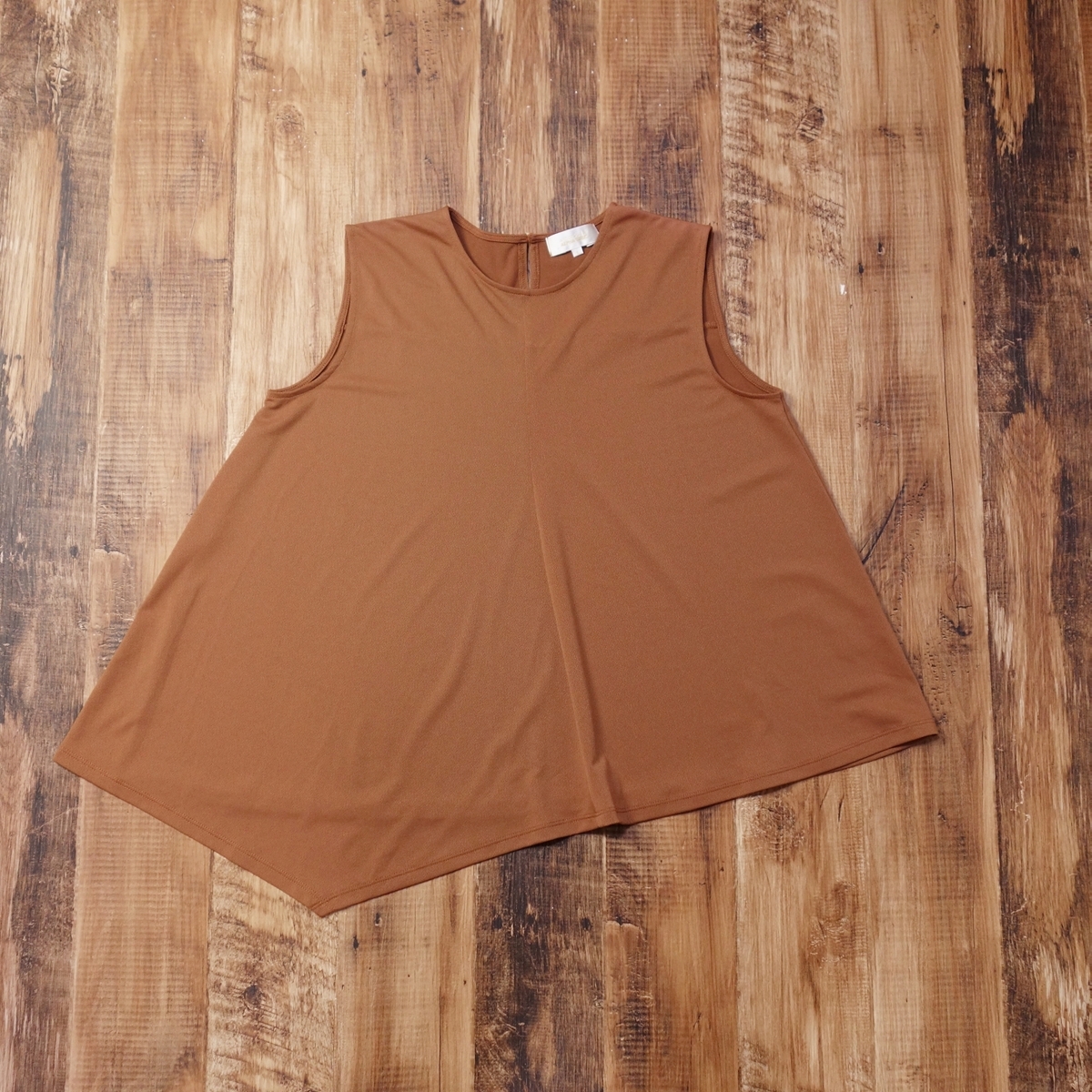 > 美品 A/C DESIGN BY ALPHA CUBIC アシンメトリーヘムノースリーブカットソー レディース ストレッチ 上品 Lサイズ ブラウン LH54