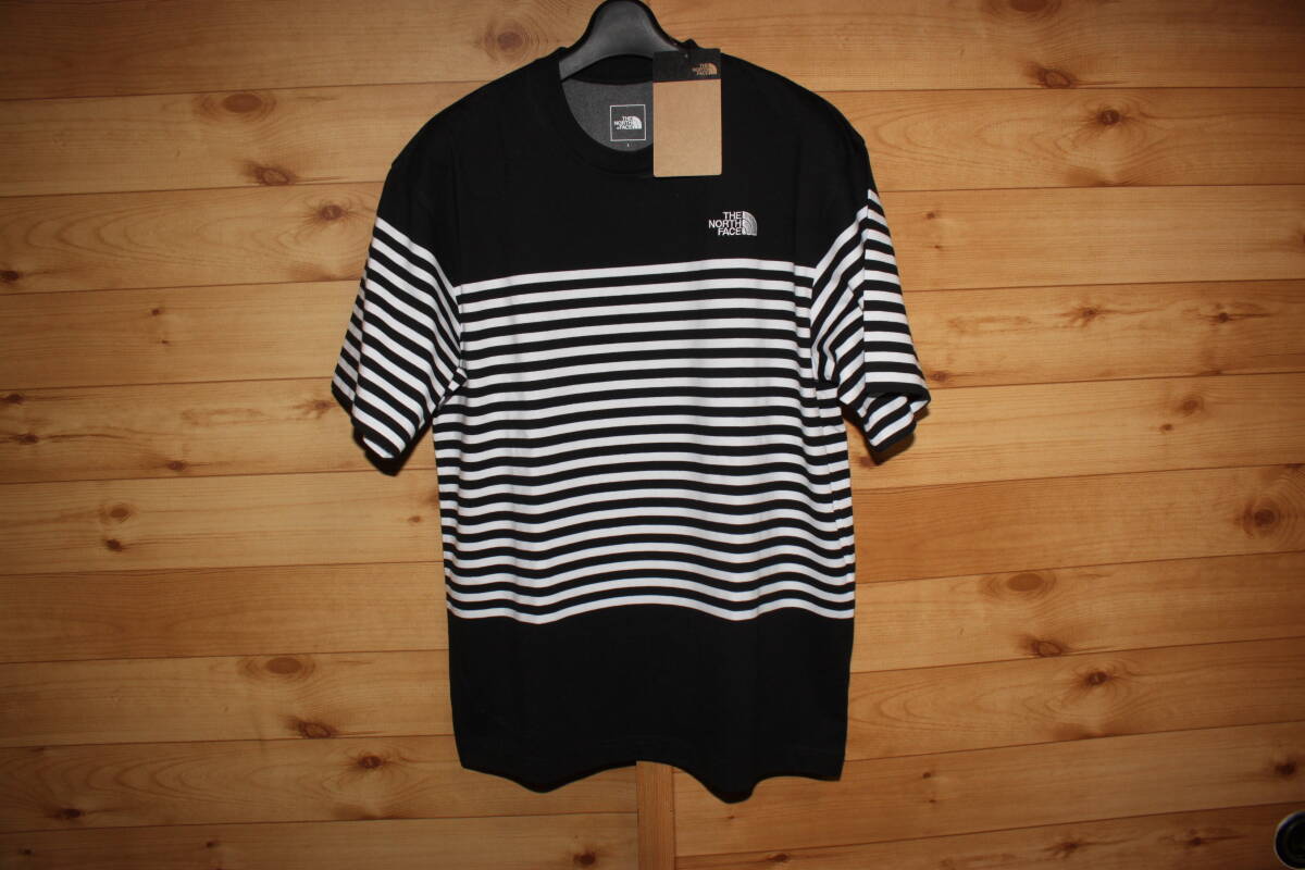 > 未使用 メンズM 黒白 ロゴ刺繍 ノースフェイス 半袖Tシャツ ショートスリーブパネル ボーダーティー NT32406 送料無料即決