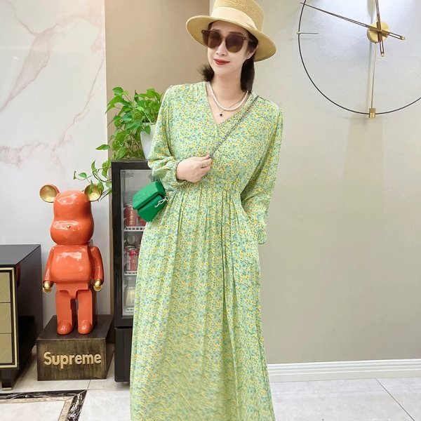 > mc 0705 長袖 ポケット ワンピース ゆったり オシャレ 裾広がる 通気性手触り抜群 肌に優しい ドレープ性 大人可愛 着丈120㎝ 柄52