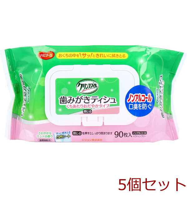 - ピジョン ハビナース 歯みがきティシュ くち当たりおだやかタイプ ノンアルコール 90枚入 5セット