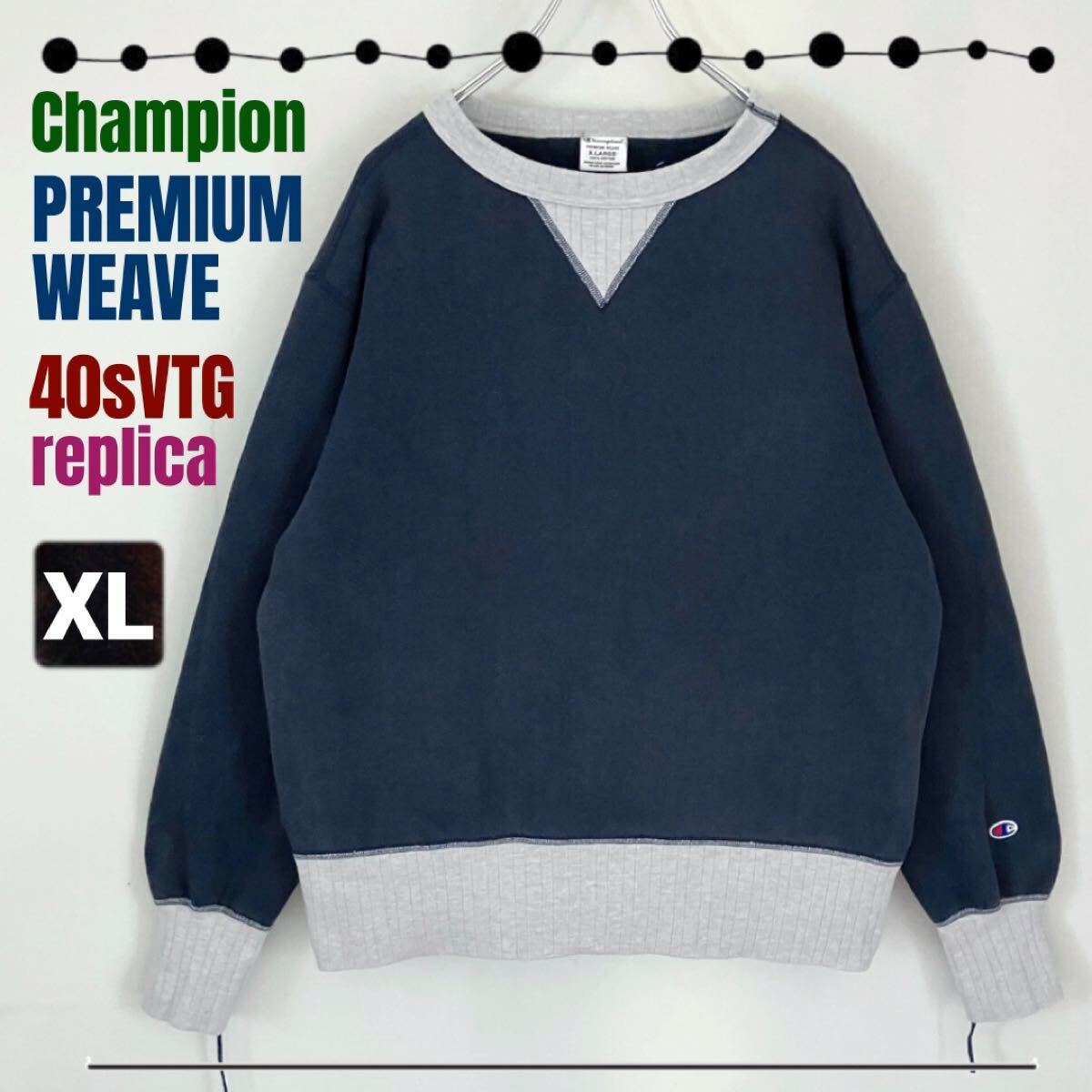 > Champion PREMIUM WEAVE★40sVTGレプリカ/吊り編み丸胴スウェット/針抜きリブ★両Vガゼット★100%コットン★日本サラリー製★メンズXL