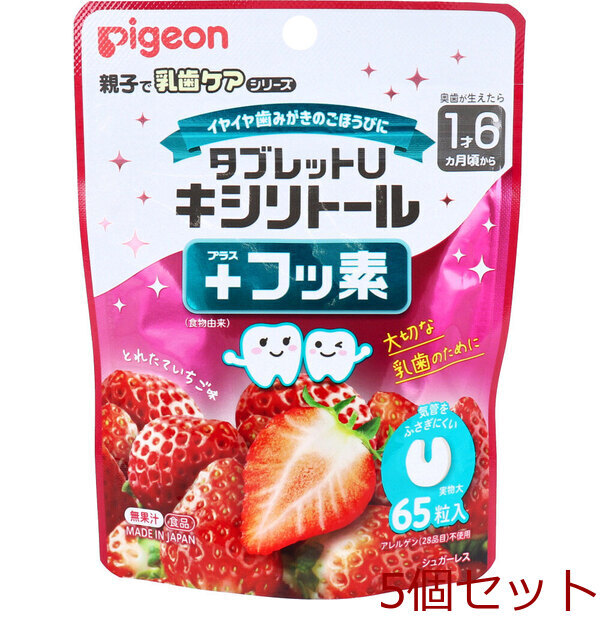 - ピジョン 親子で乳歯ケア タブレットU キシリトール+フッ素 とれたていちご味 65粒入 5セット