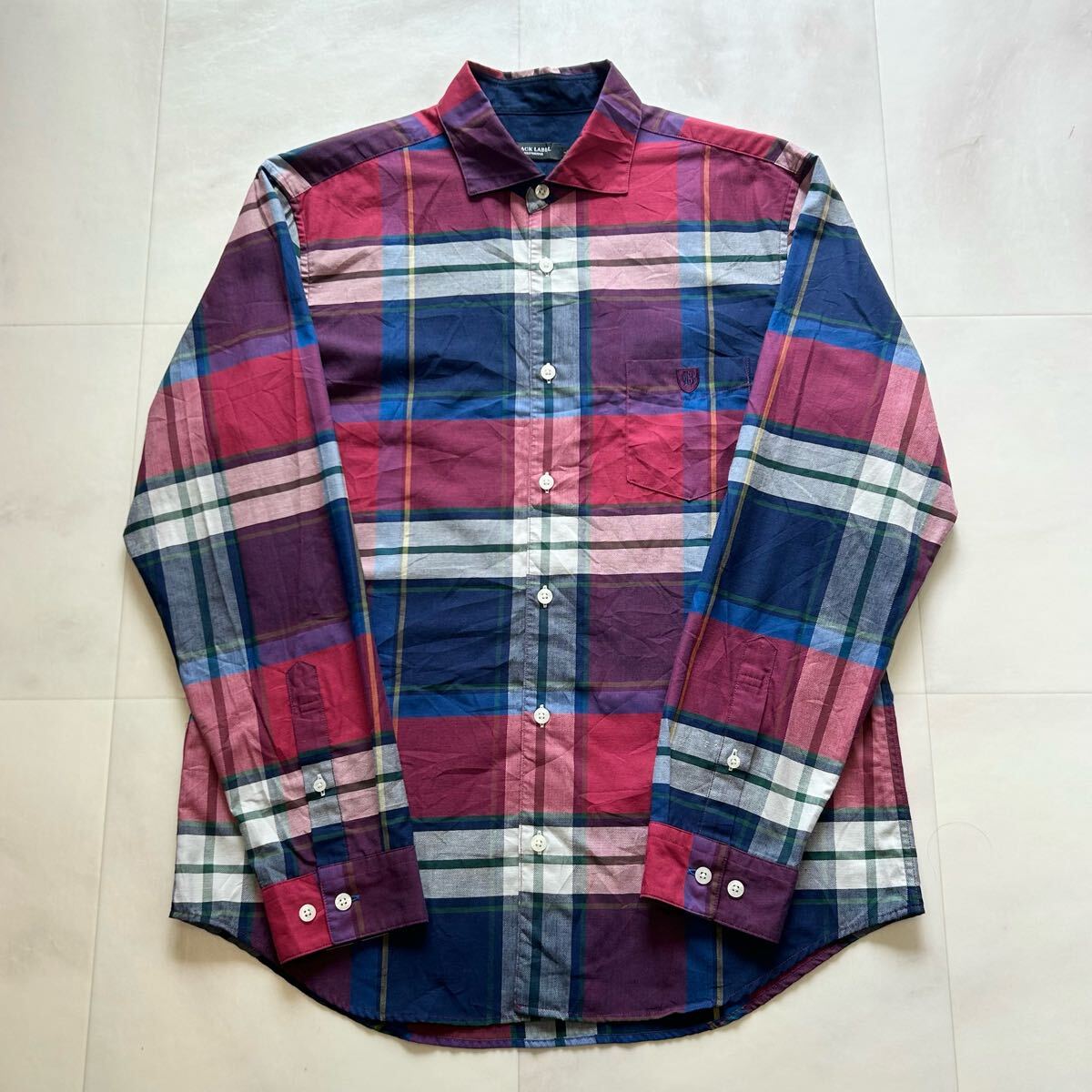 > BLACK LABEL CRESTBRIDGE ブラックレーベル クレストブリッジ チェック 刺繍 長袖シャツ 綿45% ポリエステル45% 麻10%