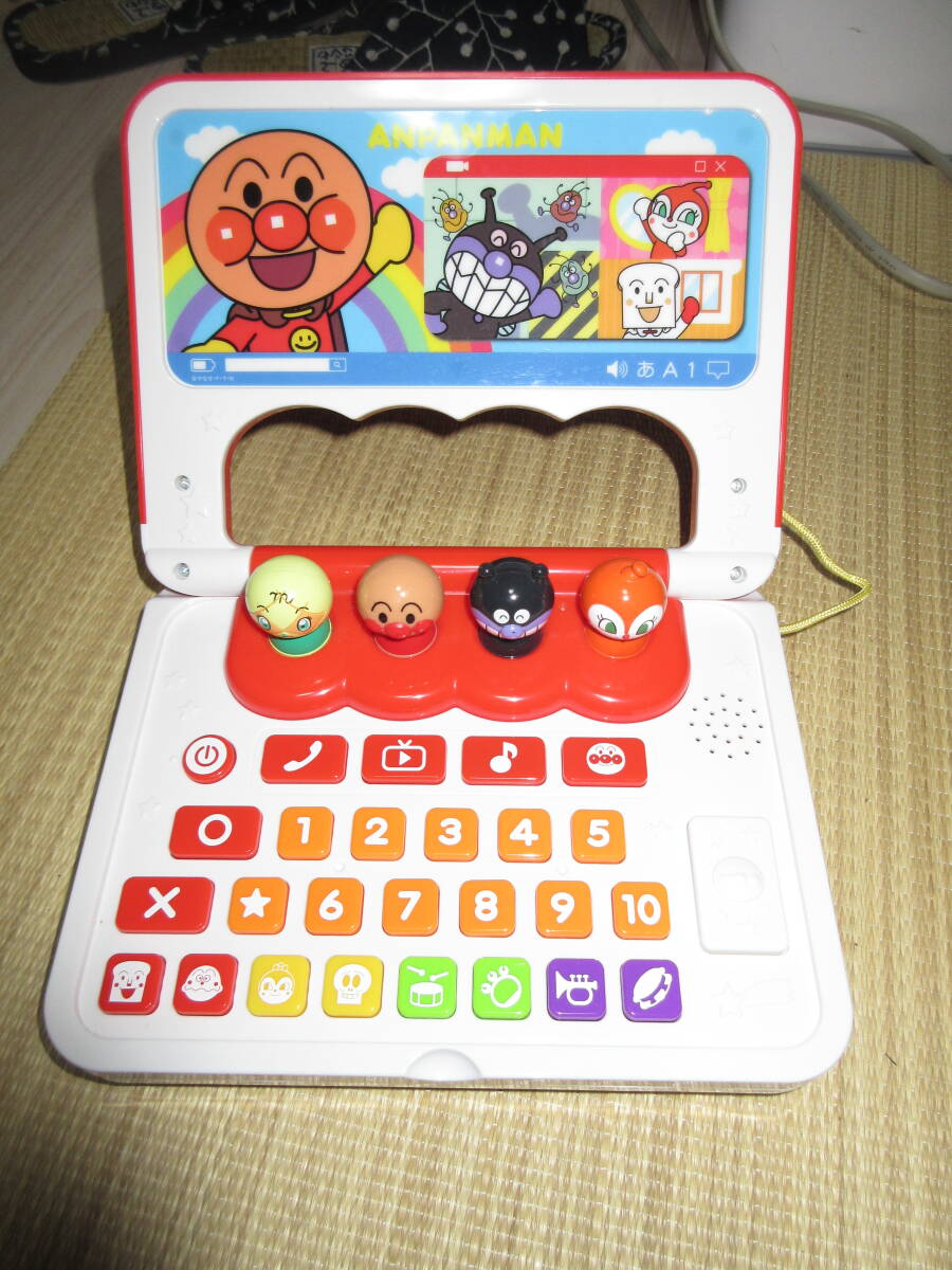 > R070515 断捨離 処分「アンパンマン たっぷりキーでカタカタ楽しいおしゃべりパソコン 通電確認のみ 箱無」保管品 USED