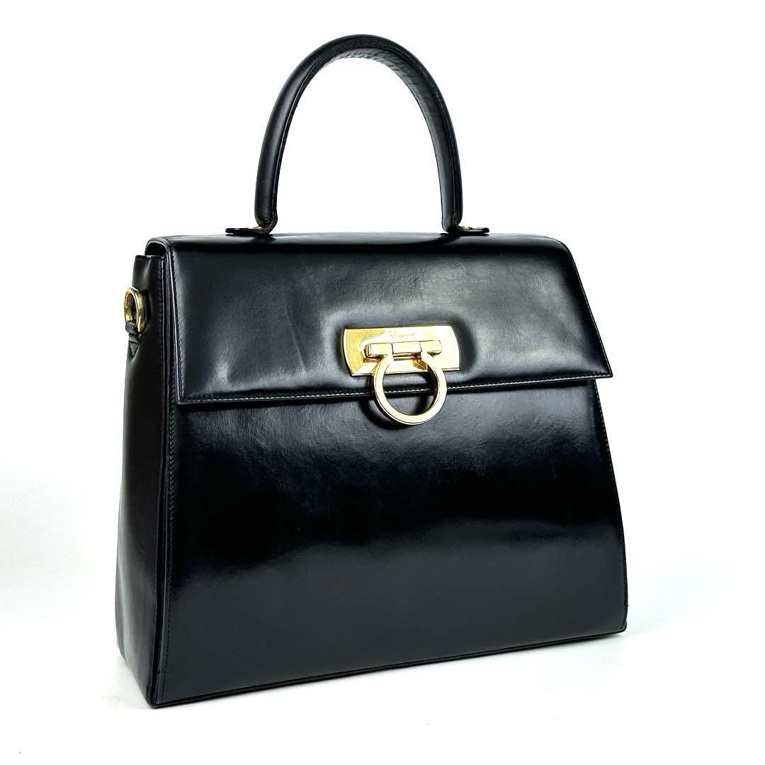 > 【美品】Salvatore Ferragamo サルヴァトーレフェラガモ ハンドバッグ ガンチーニ ゴールド金具 トート フォーマル カーフレザー 黒 人気
