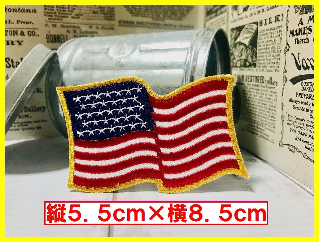 > アイロン 接着 刺繍 ワッペン!アメリカ 星条旗 波型 金枠!代表 オリンピック