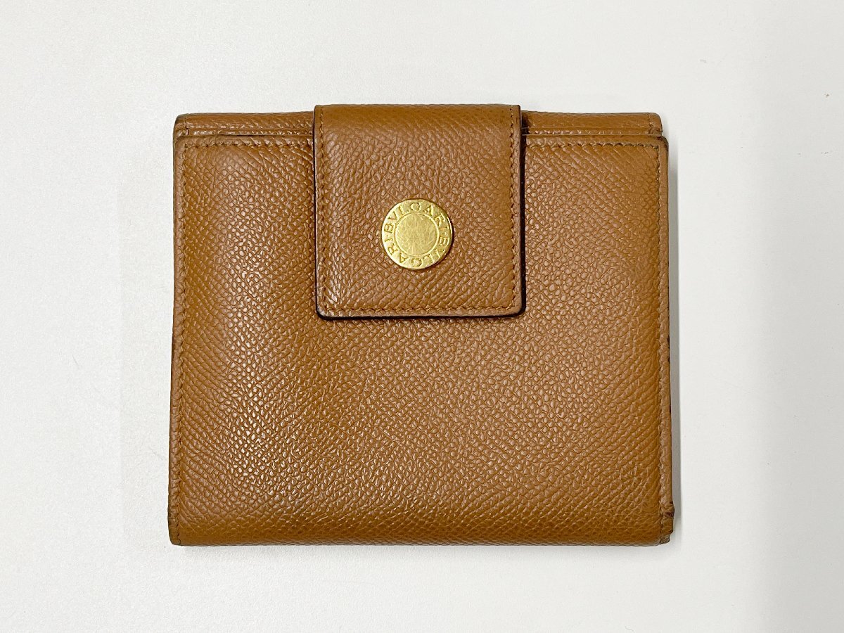 - ■BVLGARI ブルガリ 折りたたみ財布 2つ折り ウォレット キャメル カードケース 収納 Wホック ゴールド金具 ファッション小物(他1064)
