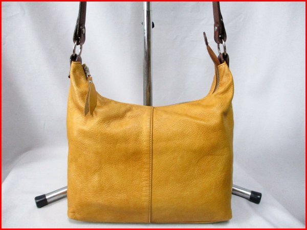 - 本革 ショルダーバッグ◇キャメル ビンテージ風 斜め掛け W33cm