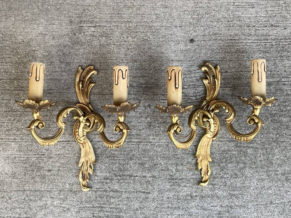 > 17. 2個セット!フランスアンティーク ランプ ブラケット 2灯 キャンドル 照明 ライト ウォール 蚤の市 店舗 什器 カフェ 美容室