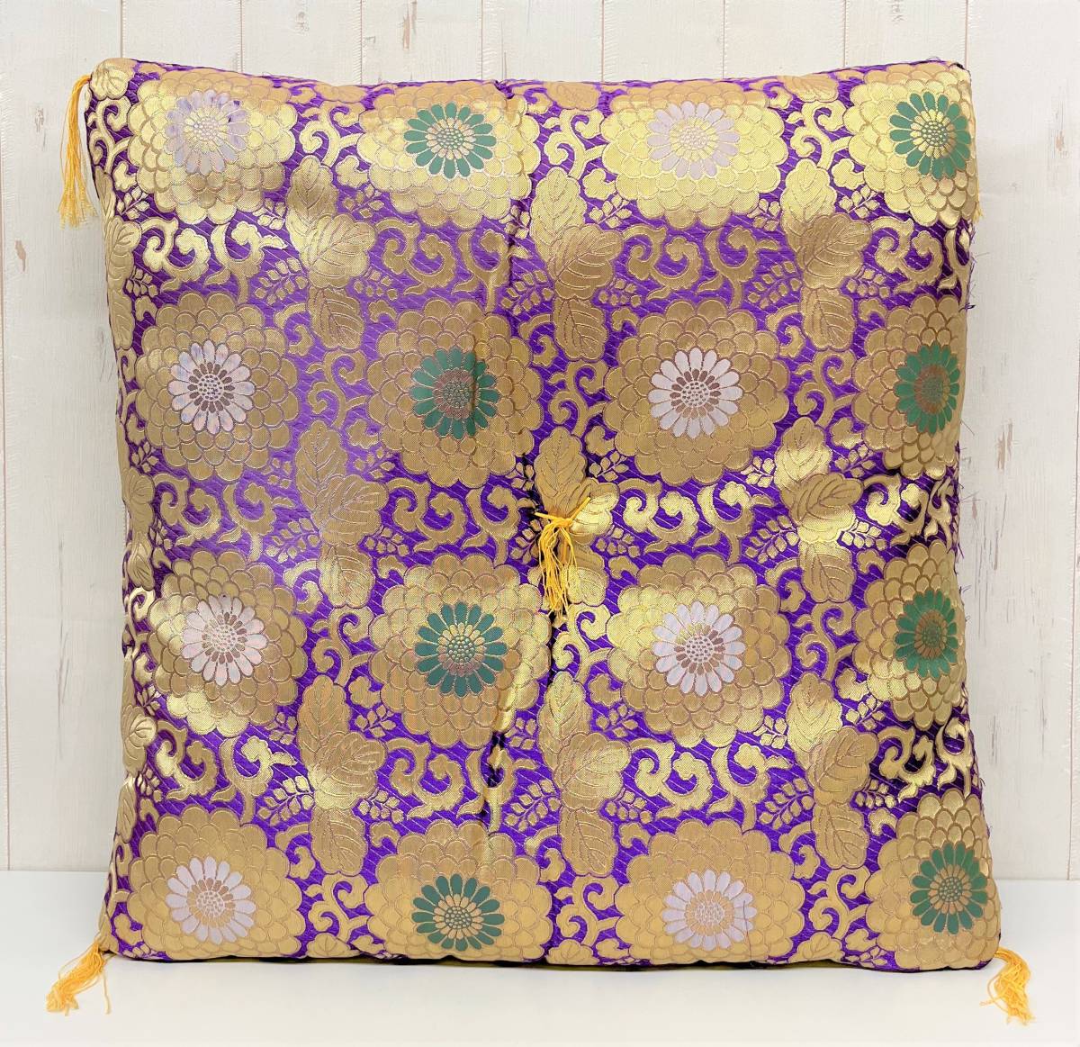 - 伝統工芸 仏教美術 仏教 高級仏具 金襴御前 座布団 法要 金欄 金糸 織金 紋織物 紫 菊紋 花唐草文 仏具 法事 法要 仏事 JAPANESE CUSION