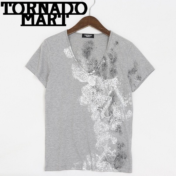 - ◆TORNADO MART トルネードマート ペイズリー柄 シルバープリント Vネック コットン 半袖 Tシャツ グレー